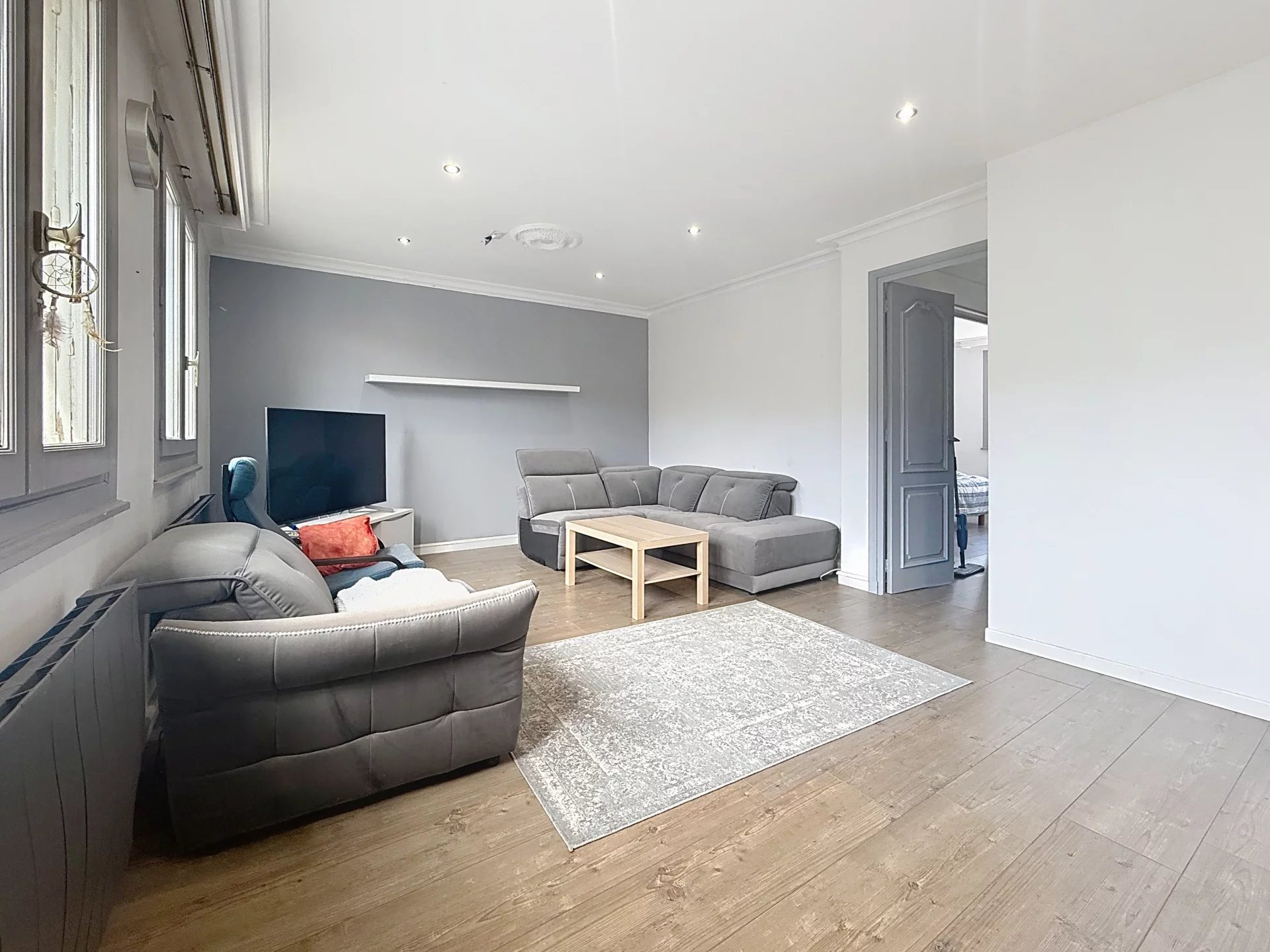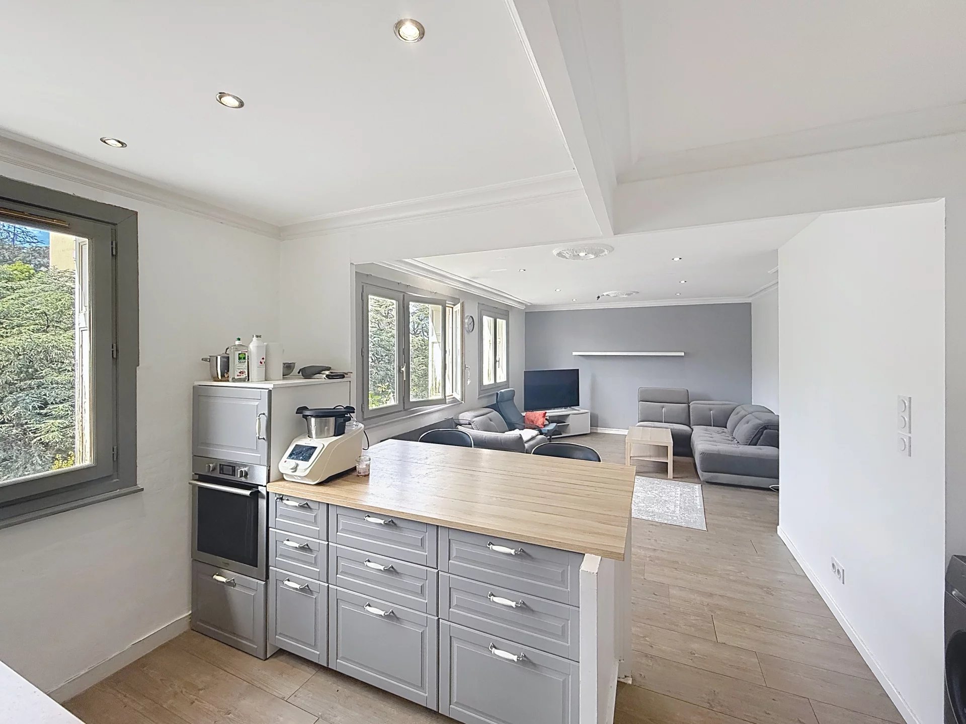 Une vaste pièce de vie lumineuse, avec cuisine ouverte aménagée et équipée, idéale pour recevoir.